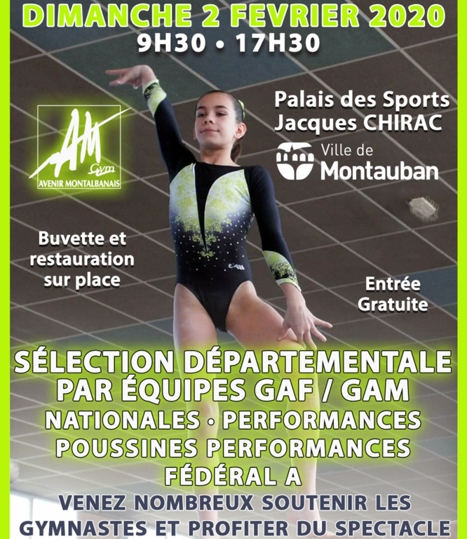 L'Avenir Montalbanais accueille le DIMANCHE 2 FEVRIER 2020 la sélection Départementale par Equipes GAF / GAM