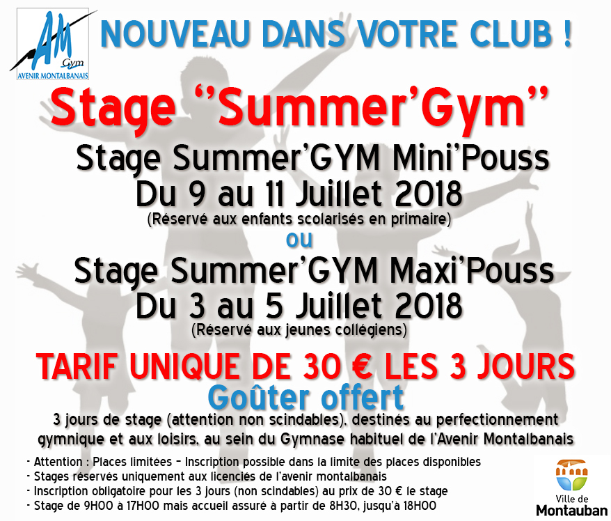 Nouveau dans votre club – L’avenir Montalbanais Gymnastique vous propose des stages ‘’Summer’Gym’’