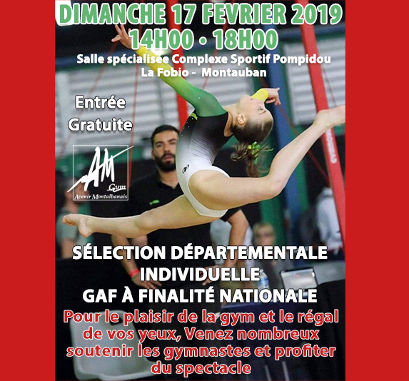 L'Avenir Montalbanais Gymnastique a le plaisir de vous accueillir pour La Sélection Départementale Individuelle GAF à Finalité Nationale
