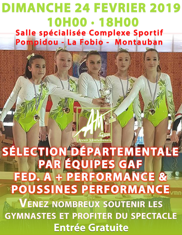 L'Avenir Montalbanais Gymnastique a le plaisir de vous accueillir pour La Sélection Départementale par Equipes GAF
